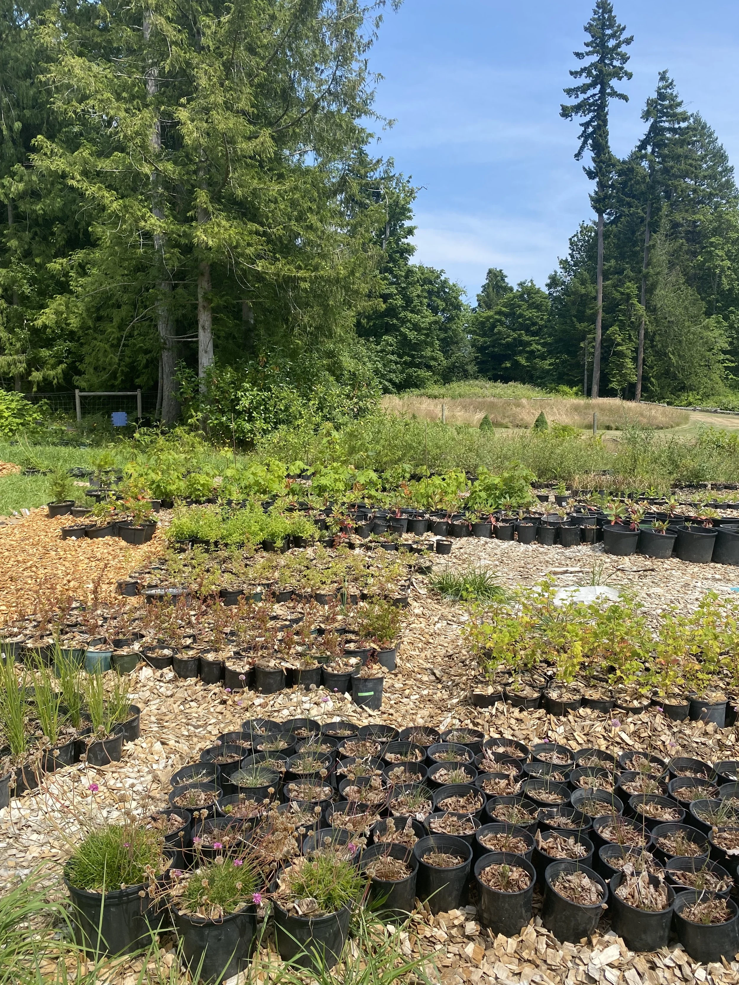 At Naturally Grown, we are dedicated to growing plants native to the pacific north west of BC and non-invasive, ornamental flowers and medicinal plants that enhance the beauty and sustainability of your outdoor spaces. We specialize in growing native plants for ecological restoration projects and native plant gardens. Naturally Grown does not use synthetic chemical fertilizers and instead uses natural methods of mulching with deciduous tree leaves, beneficial microorganisms found living in leaf mulch and seaweeds collected in the intertidal zone that are high in nitrogen. We are a wholesale plant nursery that offers plant pick-up at the nursery gate or delivery within the Southern Vancouver Island radius. We require a minimum order of 10 plants per order. The nursery and its plants can be viewed virtually upon request.
